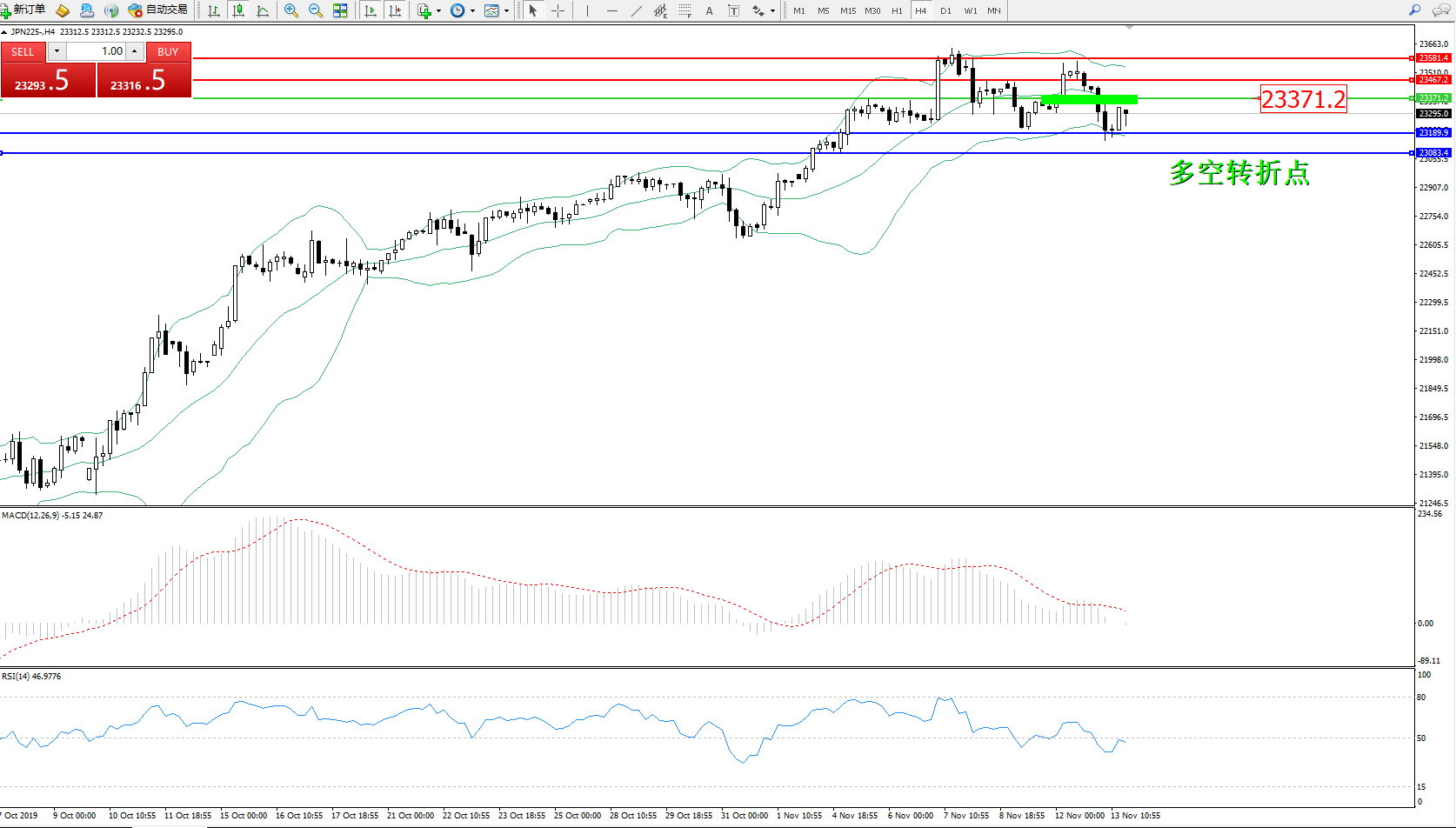 日经225指数11月13日(周三)收盘下跌197.51点,跌幅0.84%,报23322.50点。日本央行行长黑田东彦:现代货币理论没有坚实的基础,认为日本的财政和货币政策基于美国现代货币理论(MMT)是不对的,日本的财政及货币政策基于美国的现代货币理论这一说法并没有现实基础,日本央行购买债券以实现合适的收益率曲线形态,并实现物价目标 ,日本央行正在实施宽松以达到物价目标,如果市场对日本财政失去信心,政府通过发债从市场融资将有困难,维持市场对日本财政情况的信任是很重要的。