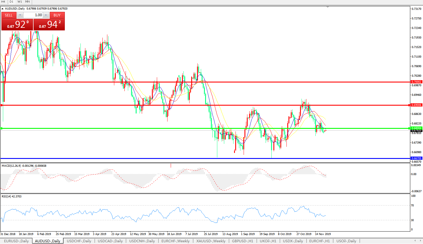 备选策略:0.6800上方看涨,目标0.6900、0.7000