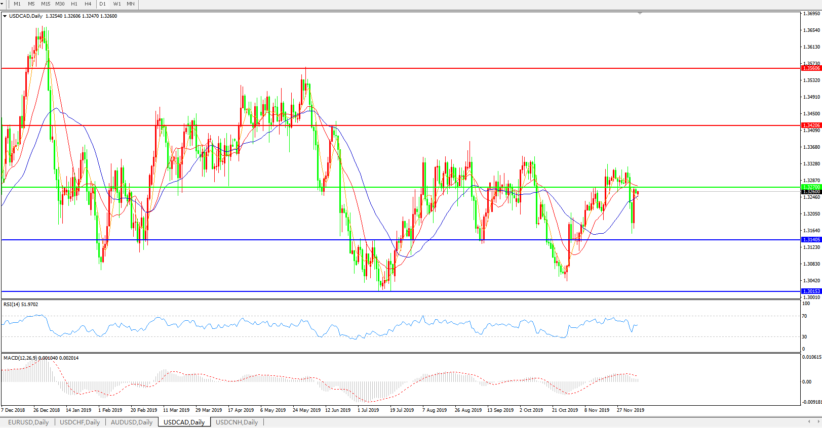 加拿大11月就业报告表现疲弱,就业人数大幅度减少,其中全职和兼职就业人数都录得减少,且失业率大幅度上升了0.4个百分点,就业参与率也降低了0.1个百分点,数据全面下滑;加拿大央行在本周的决议中意外维持利率不变,并向市场释放了鹰派基调,加拿大央行认为未来的利率决策将以央行对贸易冲突对加拿大经济韧性来源,不利影响的持续评估为指导。财政政策的发展也将纳入1月份更新后的央行展望;疲弱的加拿大就业情况势必给加拿大央行降息带来压力,即使贸易存在不确定性,加拿大央行下次决议降息的压力也会越来越大;和疲弱加拿大就业数据更好相反,美国11月非农就业报告非常强劲,这将加大美元兑加元货币对的波动,给该货币对强劲的支撑;虽然在加拿大央行鹰派基调下,本周美元兑加元前半周录得大幅下滑,但随着疲弱的就业数据公布,加拿大央行降息预期升温,该货币对有望转势回升,上方阻力位于1.3270至1.33的密集区间,更强劲的阻力则位于1.3330附近