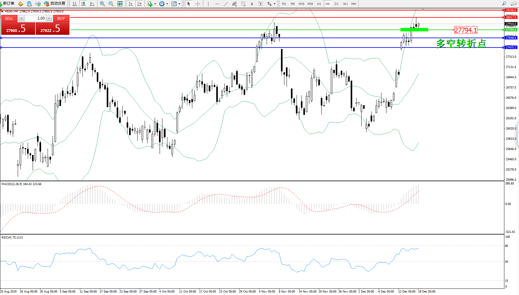 香港恒生指数12月18日(周三)收盘上涨40.50点,涨幅0.15%,报27884.21点;港股跟随外围造好而高开103点,随估再扩大升幅,恒指高见27970,近28000关口前,沽压略重,亦有投资者趁高获利,以一避风险。美国最新公布的经济数据表现强势,美国11月工业产出月率及制造业反弹的幅度大于预期,对美股上扬形成支撑。同时,在A股的带动之下,港股走势也是水涨船高的态势,预示恒指仍有上行意愿。