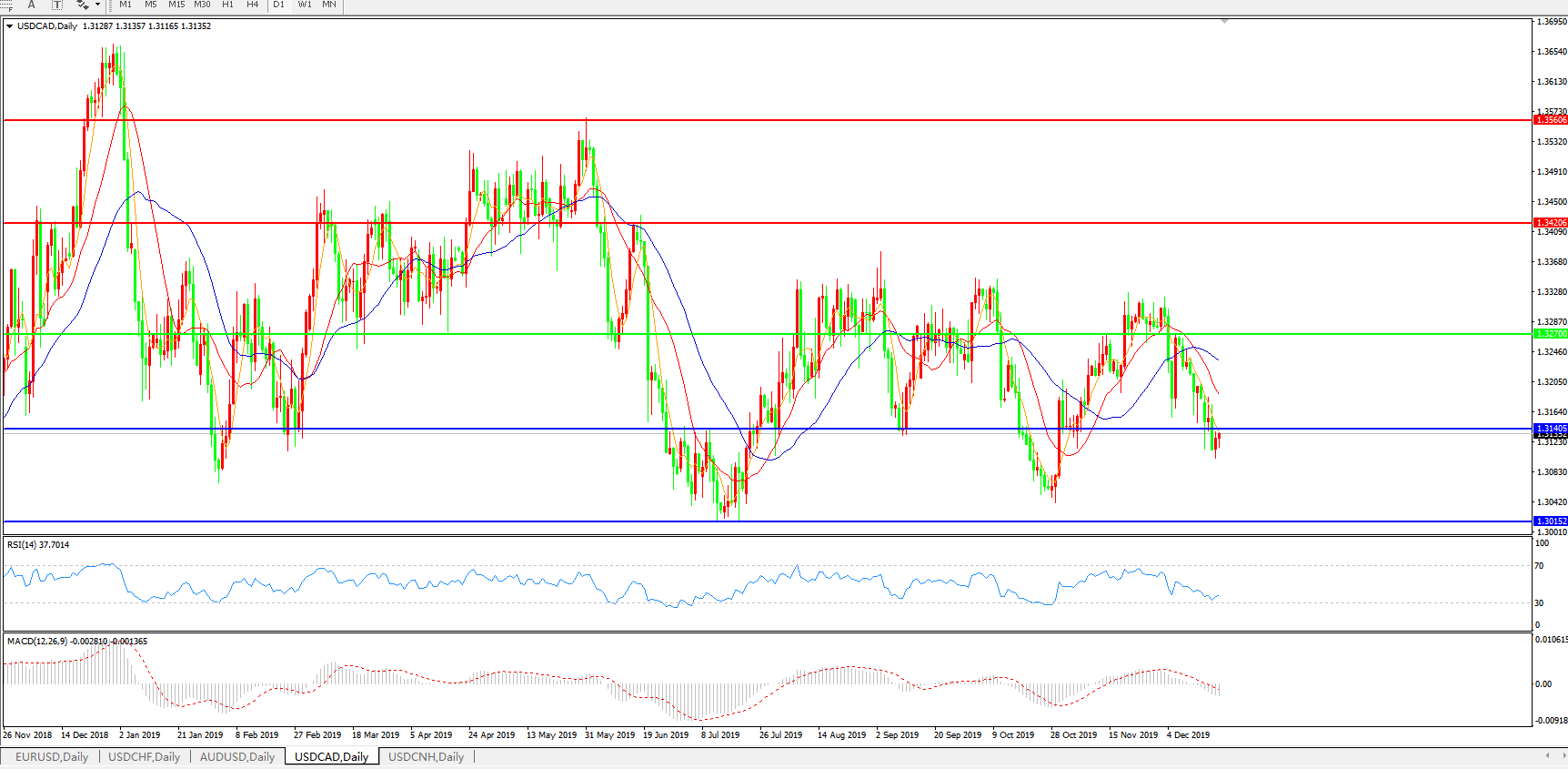 技术面简析:日线图均线呈空头排列,汇价持续走弱跌破1.3140关口,MACD下穿0轴且量能0轴下方微放量,RSI持续走低,预计汇价存进一步下行空间。