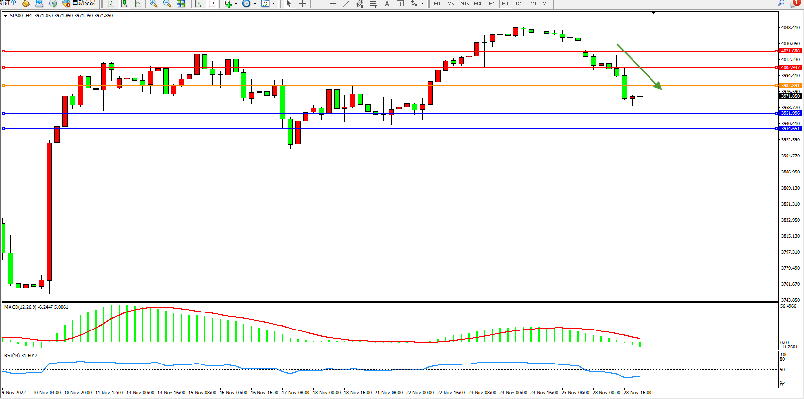 标普500指数11月28日(周一)收盘下跌60.82点,跌幅1.51%,报3965.30点;由于通胀率仍远高于2%的目标,鲍威尔可能会在任何有关降息的谈话中同时警告明年利率将进一步上升。