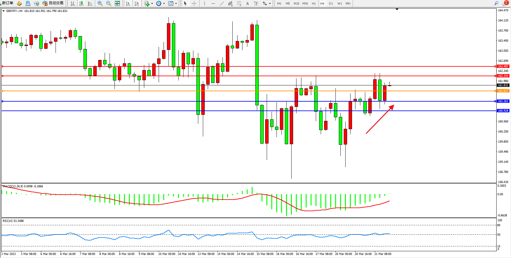 交易策略:161.627上方看涨,目标162.154  162.487