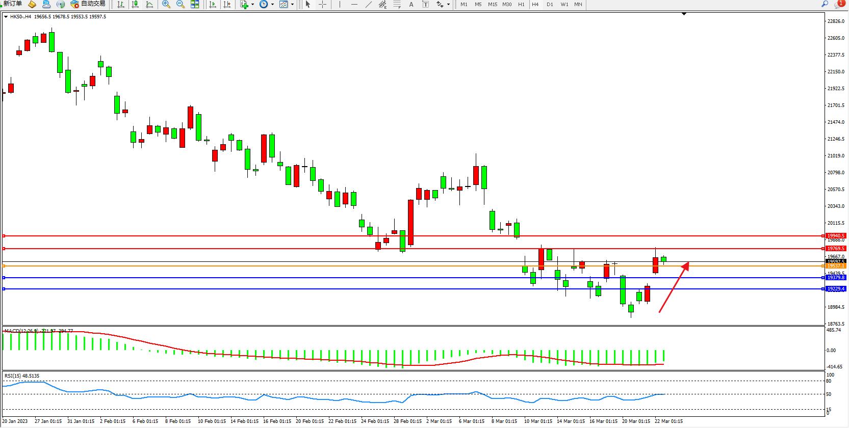 香港恒生指数3月22日(周三)收盘上涨332.67点,涨幅1.73%,报19591.43点;港股午后涨幅收窄,恒指盘初一度涨至2.68%,最终收涨1.73%上扬超330点,恒生科技指数涨1.11%,重回4000点上方。权重科技股普遍上涨,阿里巴巴涨约3%,小米、京东涨近2%,腾讯、美团皆有涨幅;高盛称香港银行资本充足,香港银行股全线拉升上涨,渣打集团、汇丰控股走强明显;南下资金净流入44.37亿港元,大市成交额为1068亿港元。
