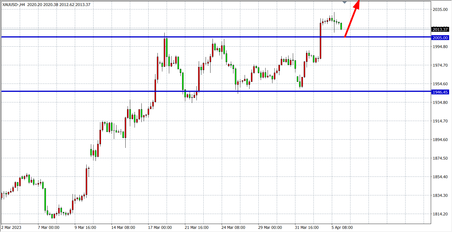 现货黄金XAUUSD 四小时图