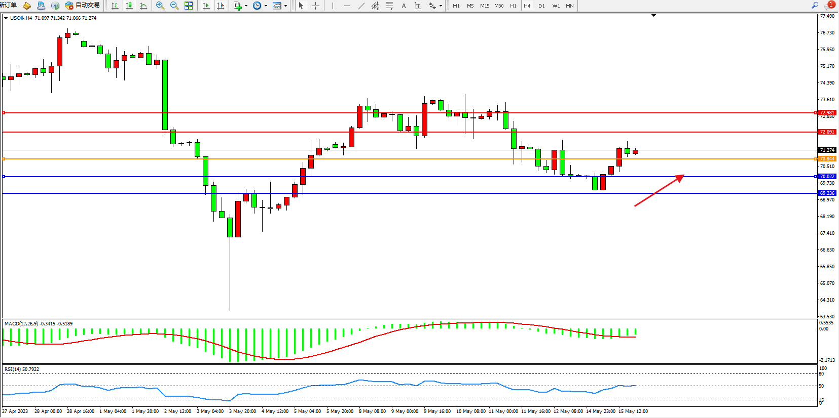 原油维持71.274附近震荡,下半年全球原油供应可能会收紧,因为OPEC+正在进一步减产。该组织在4月份宣布,部分成员将进一步减产约116万桶/日,减产总规模达到366万桶/日。尽管伊拉克石油部长Hayan Abdel-Ghani表示,预计OPEC+不会在6月的下一次会议上宣布进一步减产。