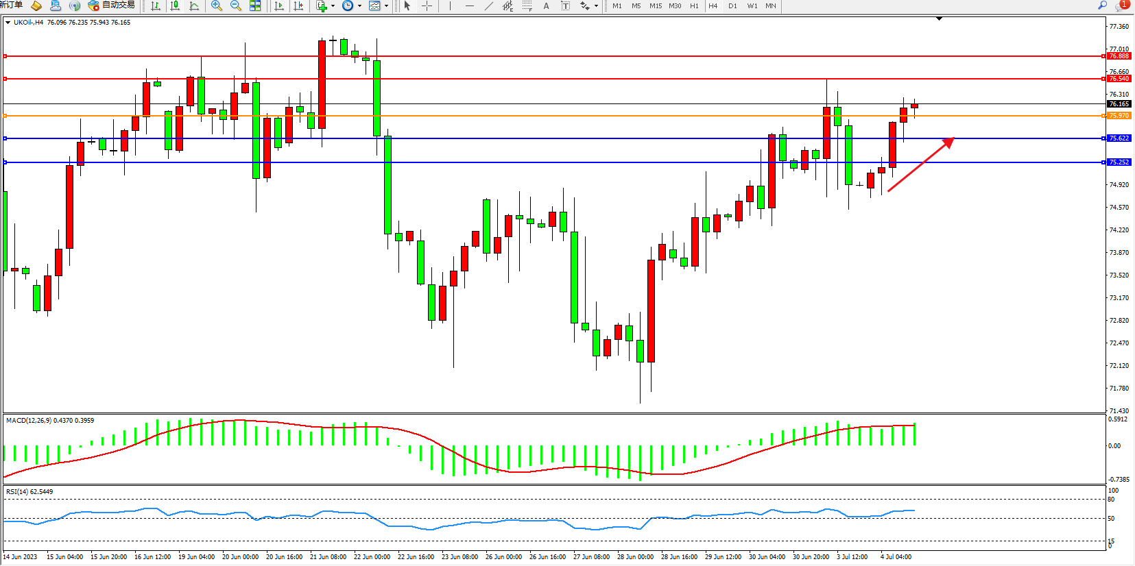布油维持76.165附近震荡,沙特与俄罗斯相继宣布继续减产,为生产商提供了更为乐观的前景。除了现货价格再次上涨外,期货价格也出现看涨迹象,布油最近价差周一收于约一个月来的最高水平,表明市场预期供应将趋紧。