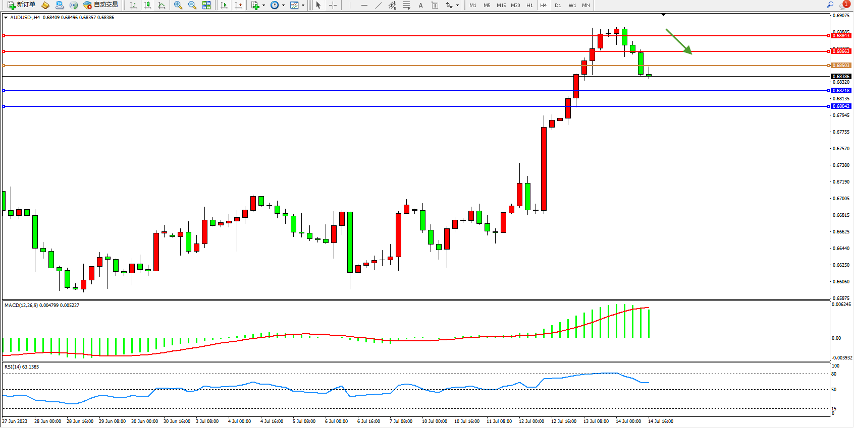 阻力位:0.68663 0.68843