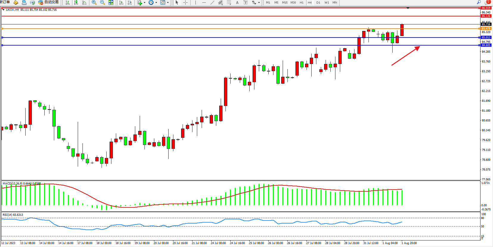 布油维持85.716附近震荡,7月石油输出国组织(OPEC)的石油产量有所下降,因作为OPEC+产油国集团支持市场的最新协议的一部分,沙特额外自愿减产,且尼日利亚一个港口的出口暂停,令供应受限。
