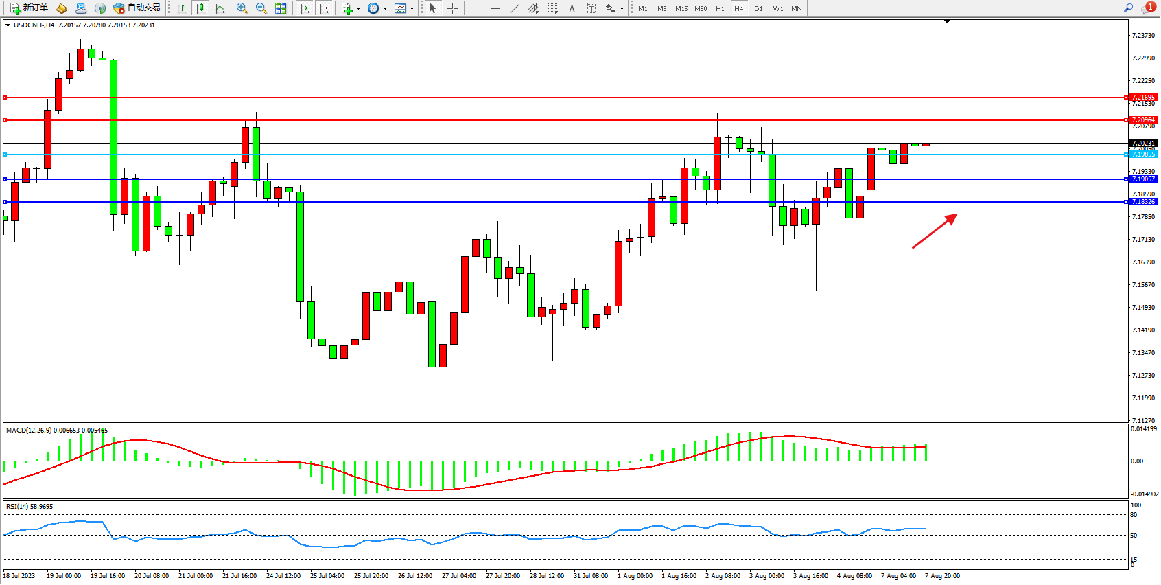 备选策略:7.19855下方看跌,目标7.19057  7.18326