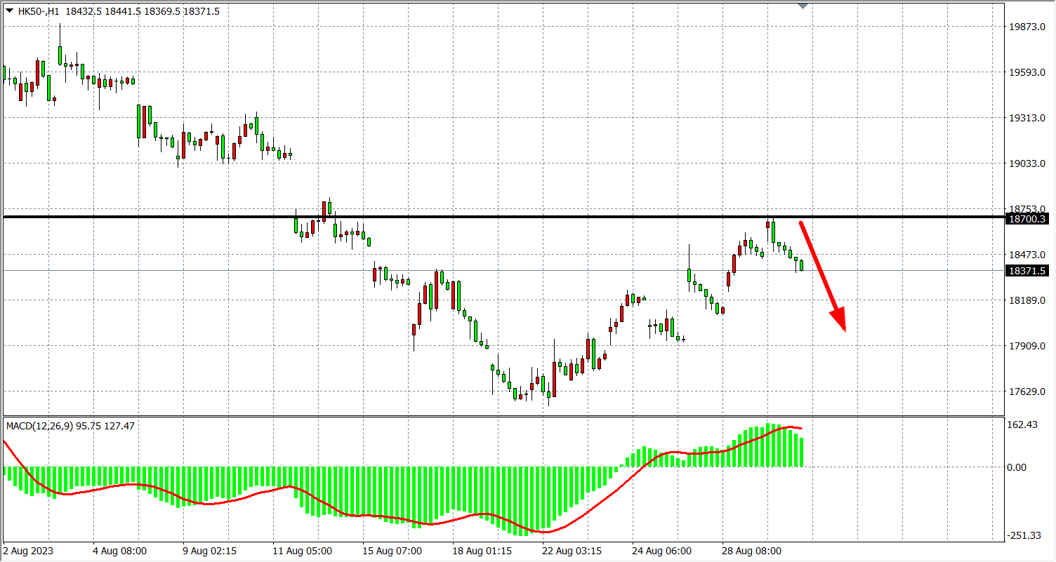 4小时图看,恒指再度高开走强高开后低走,在18700一线受阻明显,MACD量能于零轴上方有所缩减,支撑关注18200-17900附近,阻力关注18700一线。
