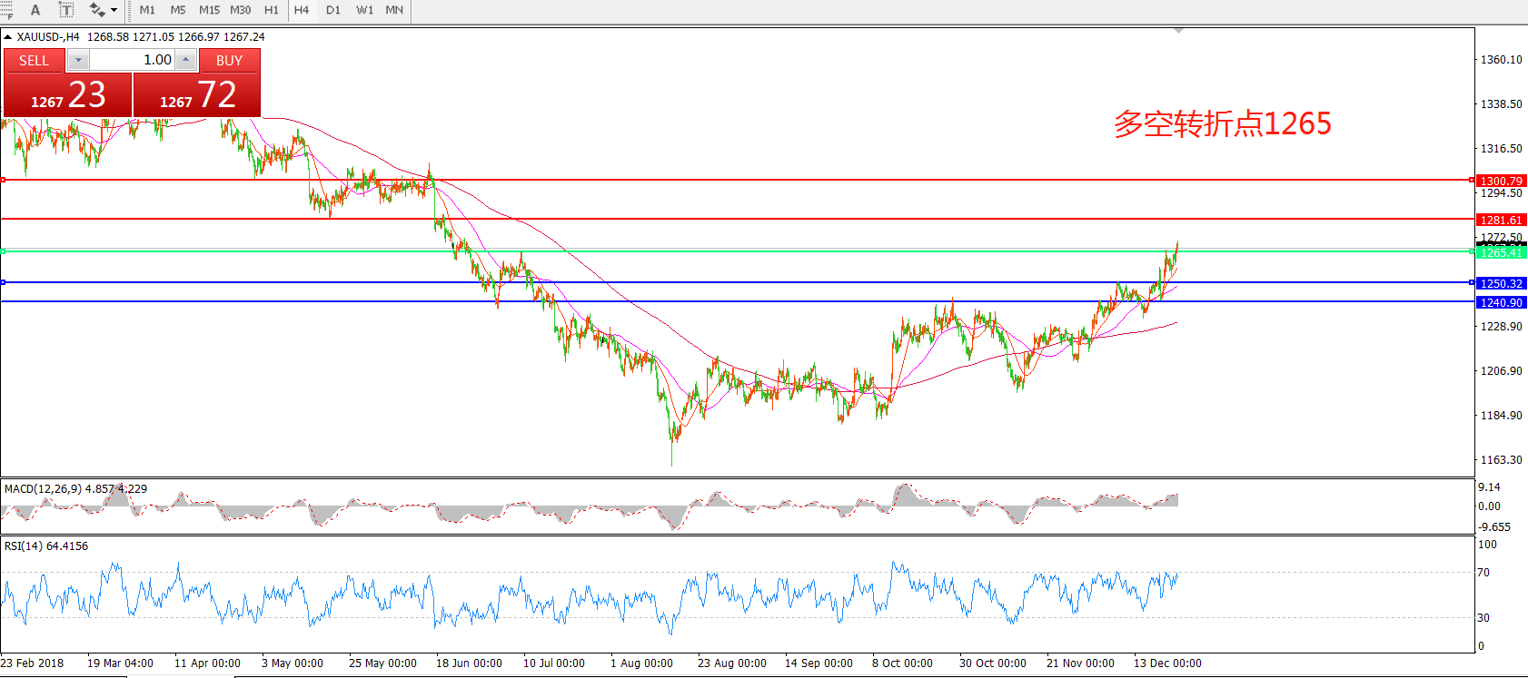 交易策略:在1265.00之上看涨,目标1280.00 1300.00