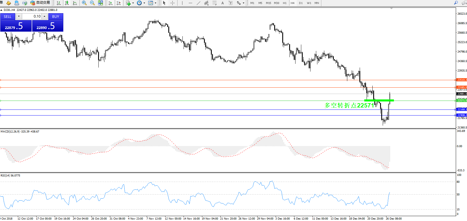 美国圣诞假期消费创六年新高。美股周三暴涨,道指历史上首次收盘涨幅超过1000点,三大股指单日收盘百分比涨幅创2009年3月23日以来最大。道琼斯工业平均指数收涨1084.28点,涨幅4.98%,报22876.48点;标普500指数收涨116.38点,涨幅4.95%,报2467.48点;纳斯达克指数收涨359.26点,涨幅5.80%,报6552.18点。因美国股市回升令安全资产对投资者的吸引力减弱,随着美国股市从圣诞抛售中反弹,投资者正在采取观望态度,并开始把一点点资金从避险资产撤出,可能进入股票市场。