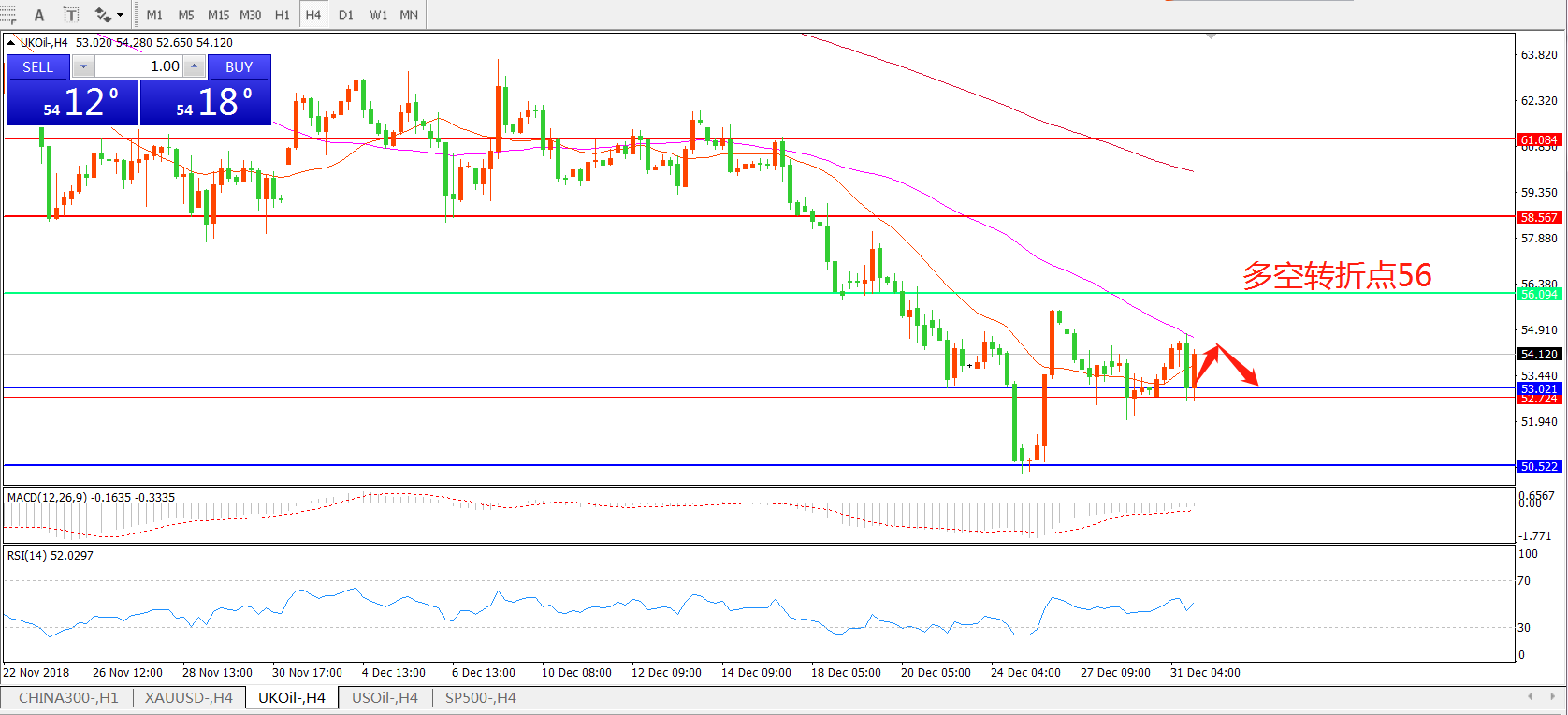 2018年的最后一个交易日内,美国总统特朗普发推指出,中美贸易谈判可能出现积极进展,这为原油等风险资产带来提振,但整体经济放缓忧虑和供应过剩问题仍在打压油价,布伦特原油周一收涨0.59美元,报53.80美元/桶,2018年下跌19.5%。