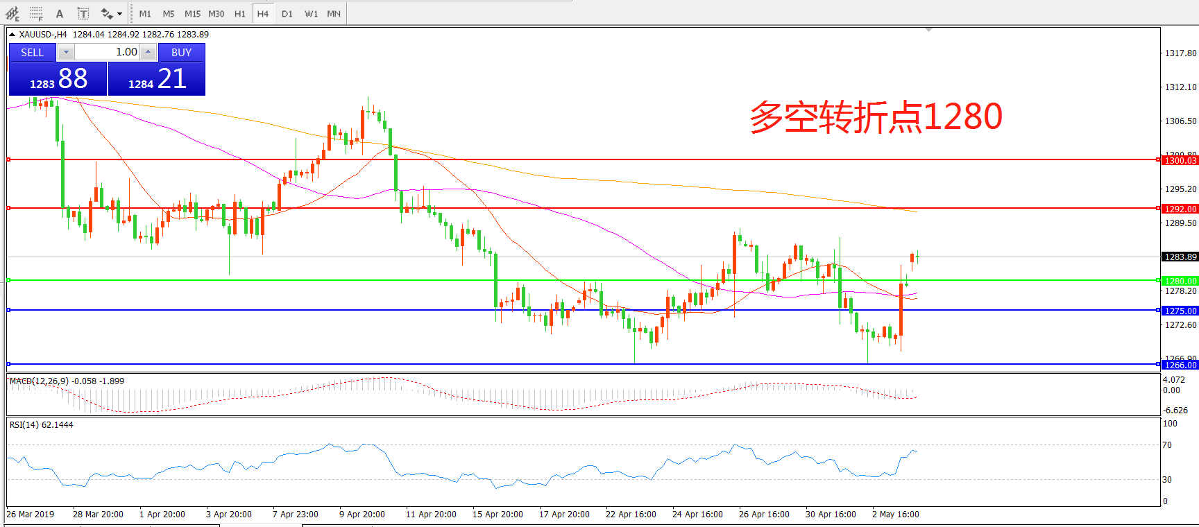交易策略:在1280.00之上看涨,目标1292.00   1300.00