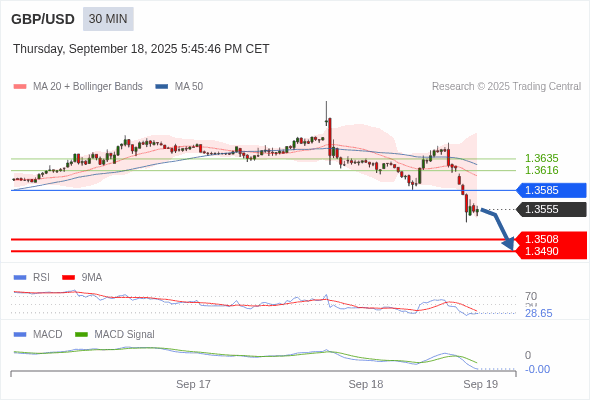 英镑/美元 当日内 : 看跌,在 1.3585 之下。