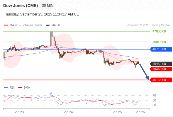 交易策略: 在 46710.00 之下,看跌,目标价位为 46360.00 ,然后为 46165.00 。