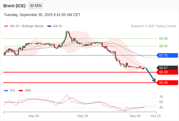 布伦特原油 (ICE) (Z5) 当日内: 存在压力。