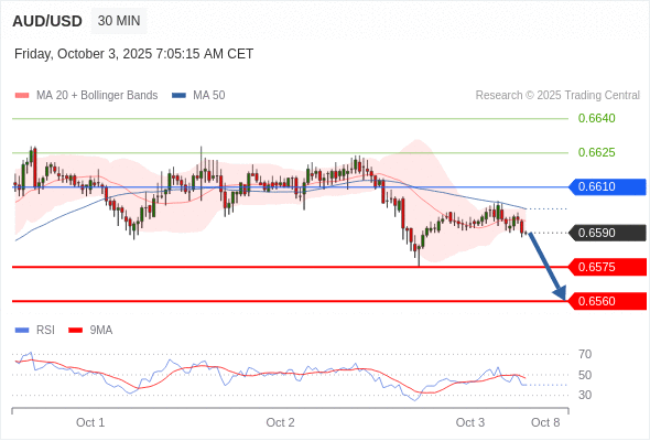 在 0.6610 之下,看跌,目标价位为 0.6575 ,然后为 0.6560 。