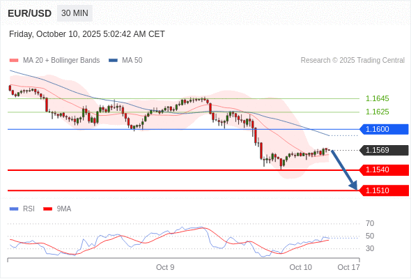 交易策略: 在 1.1600 之下,看跌,目标价位为 1.1540 ,然后为 1.1510 。