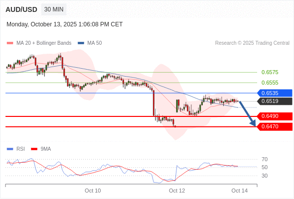 在 0.6535 之下,看跌,目标价位为 0.6490 ,然后为 0.6470 。
