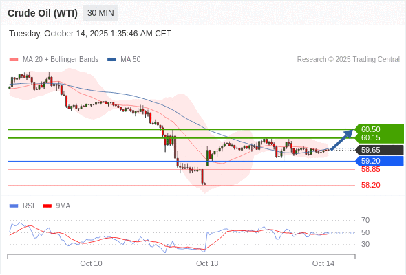 在 59.20 之上,看涨,目标价位为 60.15 ,然后为 60.50 。